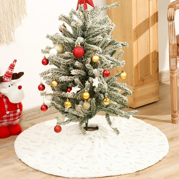48 Inch Christmas Tree Skirt White And Gold Luxury Faux Fur With Feather Tree Skirt Christmas Decorations Plush Tree Skirts Xmas Ornaments Gold Feather Walmart Com
